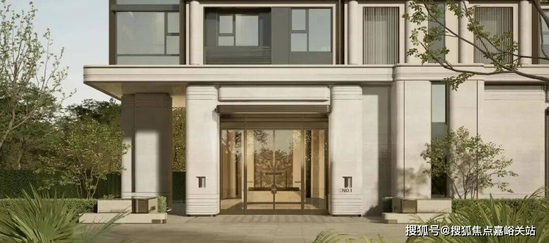 材质:局部温润石材、仿铜铝板、仿石铝板及局部仿石涂料,竖向铝板提升品质感