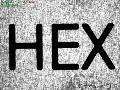 轮廓光照明是将光源放置在物体的背面,使透光和不透光的部分区分开来,透光处呈白(亮)色,不透光处呈黑(暗)色,从而得到一个黑白对比分明的图片,便于清晰地获得物体的轮廓信息。针对非透明件的外形尺寸以及通孔位置,轮廓光是比较理想的选择;针对塑料、玻璃等透明或半透明物体检测时,轮廓光能够有效地突出物体的表面细节特征。下图为使用轮廓光测量金属件轮廓以及透明塑胶件丝印图案的效果图。