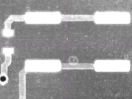 高亮频闪环光配套频闪控制器,适用于飞拍设备,满足拍照过程中不停顿的需求,整个方案检测效率翻倍,如PCB/菲林板、模切件、光伏板、金属板等产品检测。下图为PCB板效果图。