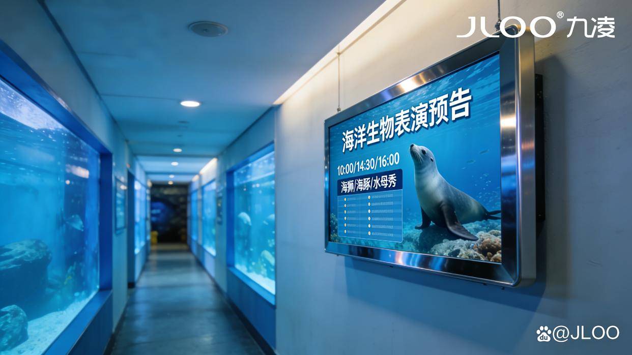 水族馆作为集科普、观赏、娱乐于一体的休闲场所,核心竞争力在于打造沉浸式海洋体验,而表演预告的精准触达与互动娱乐的创新升级,是提升游客体验、增强场馆粘性的关键。九凌JLOO深耕商用显示领域十余载,依托自身在液晶显示技术上的深厚积淀,结合水族馆场景的潮湿、强光、高人流等特殊需求,推出专属液晶广告机应用方案,将表演预告的高效传递与互动娱乐的趣味升级深度融合,打破传统水族馆“单向观赏”的局限,以科技赋能场馆,打造“观赏+互动+记忆点”的三维体验,助力水族馆提升运营效率、强化品牌口碑,实现差异化竞争。